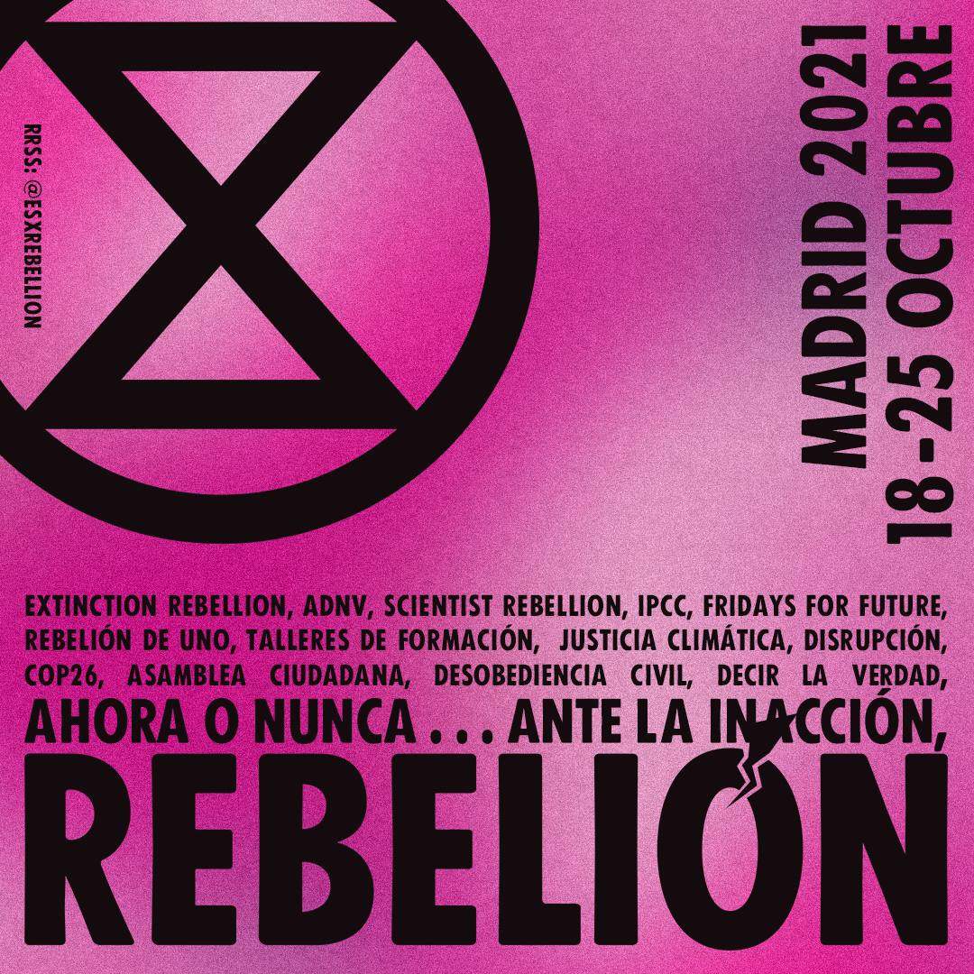 - Miércoles 20 (9:00) -> Acción XR junto a Scientist Rebellion España sobre el IPCC, reclamando que se escuche a la ciencia